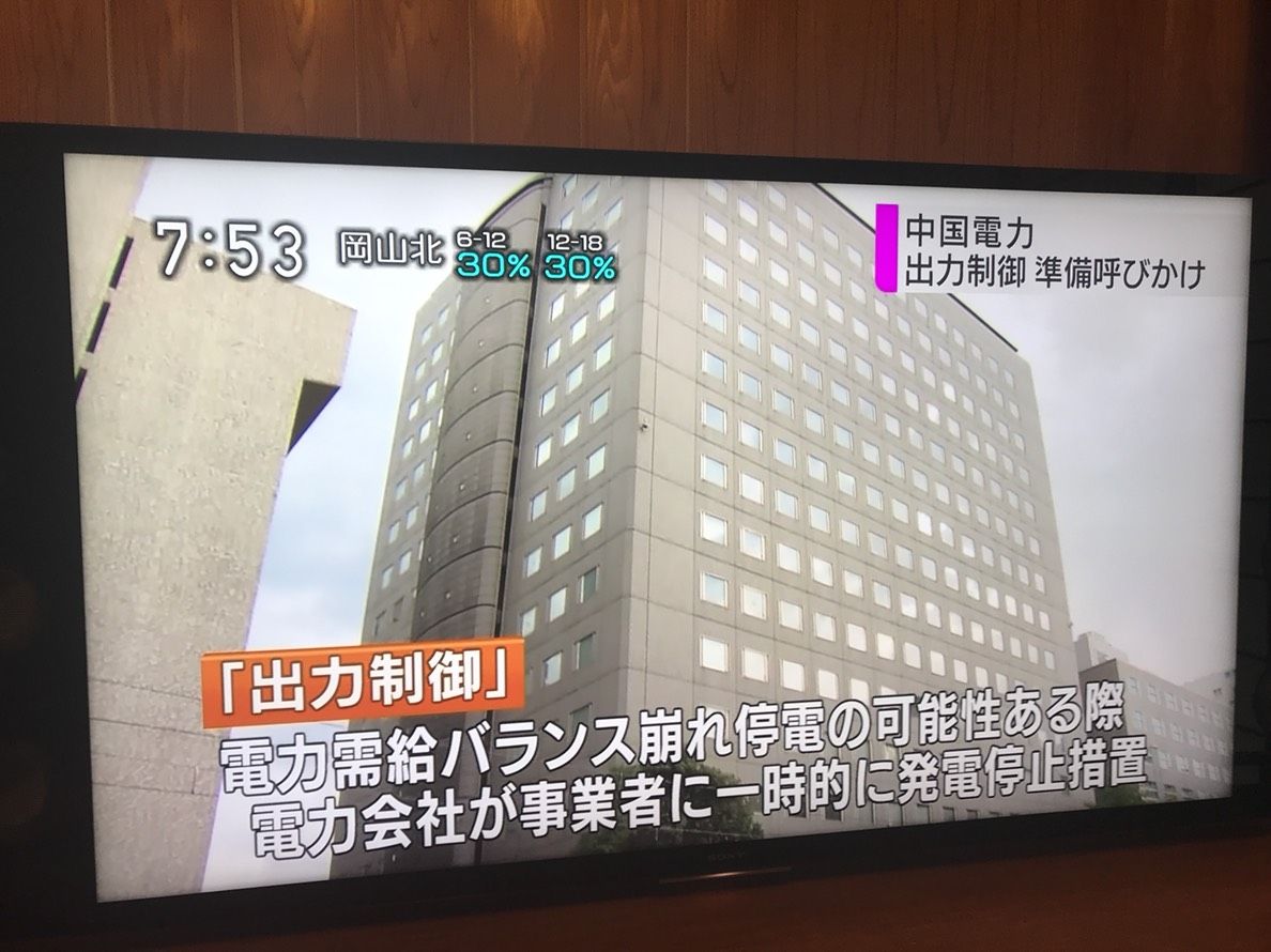 ついに出力制御の波が中国電力に来るようです