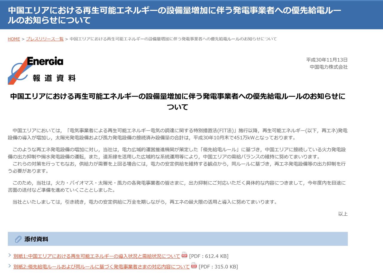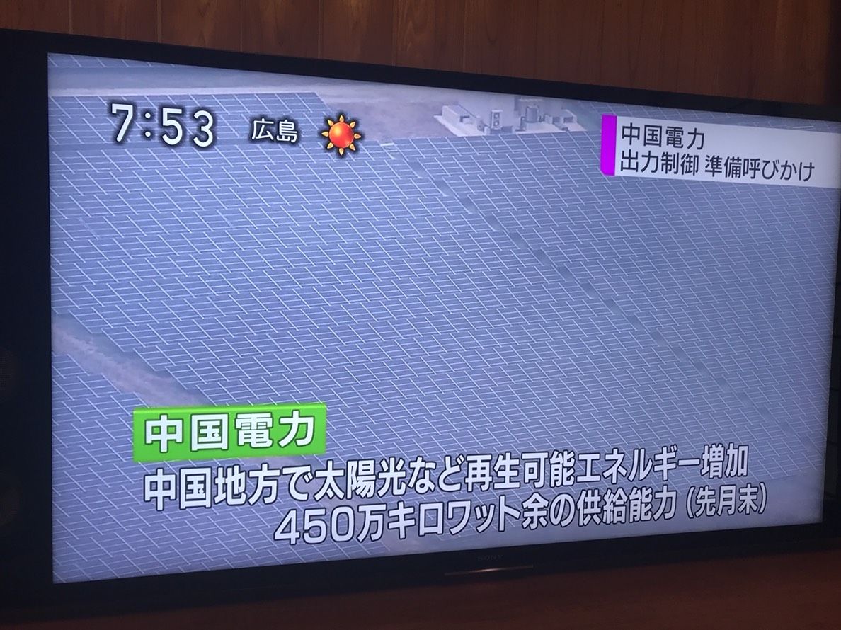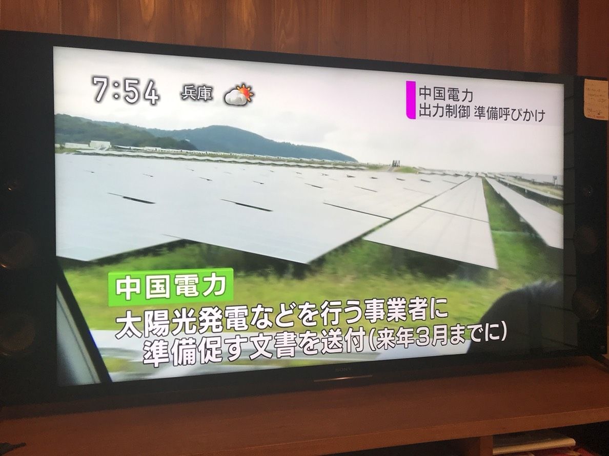 ついに太陽光出力制御が中国電力にも…