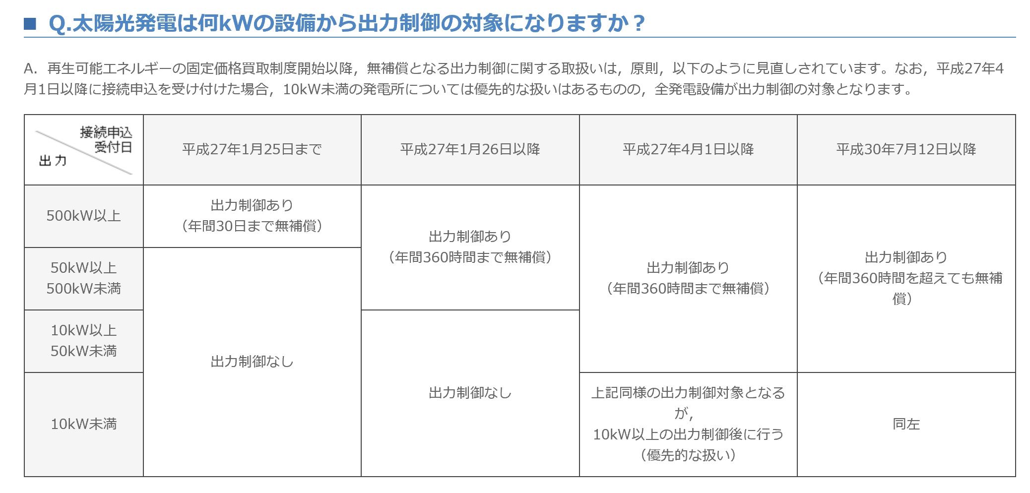 ここで「出力制御とはなに?」とお思いの方に簡単に説明しますと