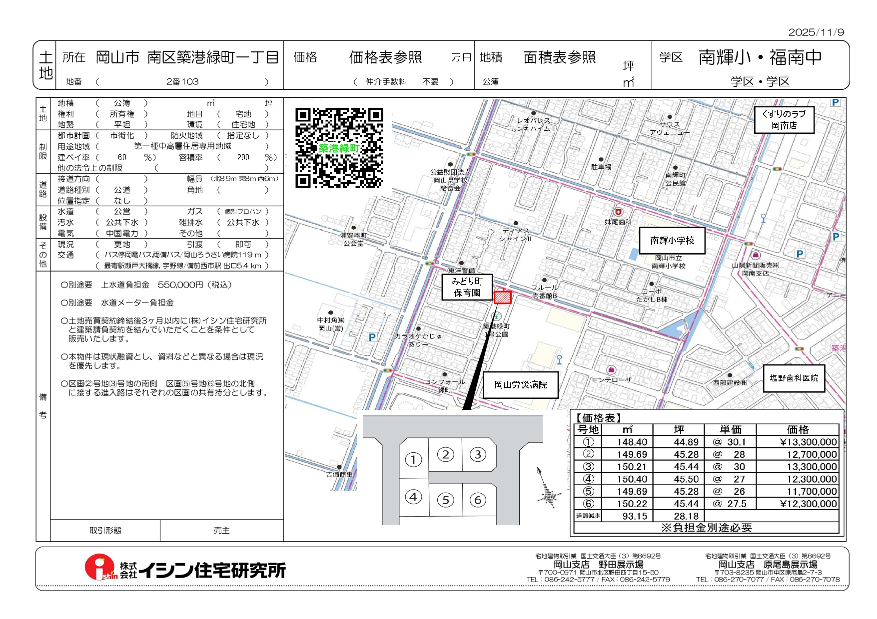 | 物件所在地 | 岡山市南区築港緑町1丁目 | 販売区画数 | 6 |