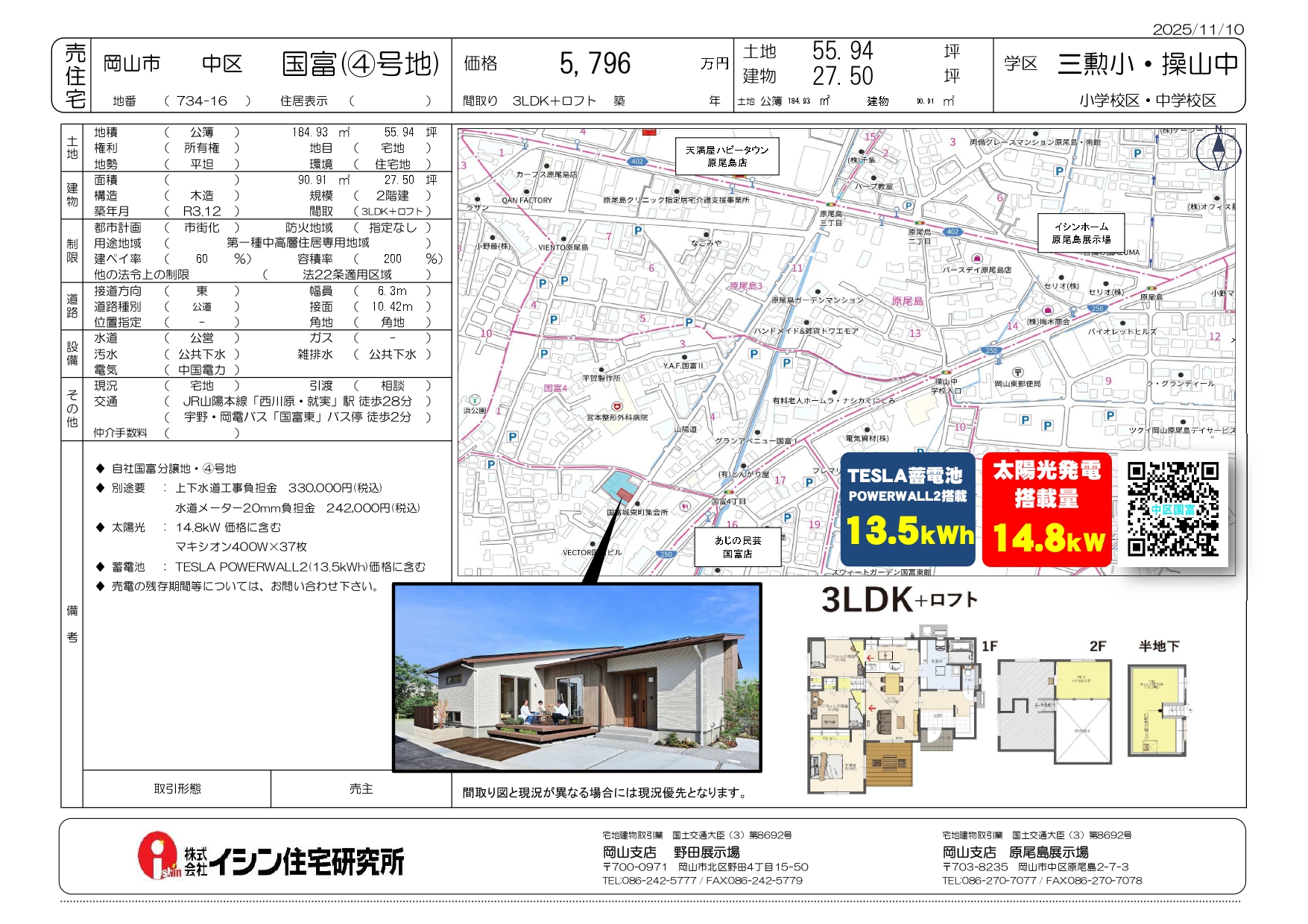 土地面積 184.93㎡(55.94坪) 建物面積 90.91㎡(27.50坪)